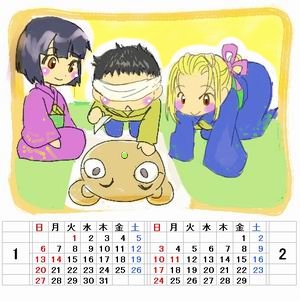 …何がって、カレンダーを作ろうと思ったですよ。 以前大好きだったサイト様がご本のオマケに フロッピーサイズの6枚カレンダーを作っていた事を 思い出し、自分も挑戦してみようと思ったのですが…挫折。 画面が小さいので、ちびキャラで描こうかと 思ったのですが、そのちび具合が思ったより難しく…。 (描きかけ)…この辺りで挫折しました。 何度も書き直ししてる内にちょっとうんざりしてきました。 …うんざりして尚、頑張る事ではなかったYO…。 ----------------------------------------------------------------- 最近ちょっと元気出ないっていうか、心配事があるんですが…、 私がここで心配したからって、何にもならない事であったりして… ちょっとしょぼんとしつつも、私は私に出来る事を頑張ろう…と思いました。