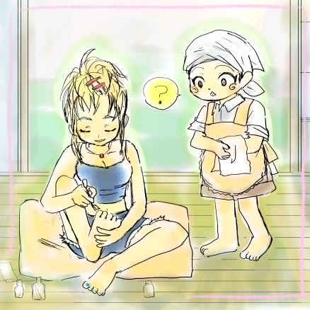 夜中に知った(?)ので、今日お祝いしてみる。 おめでとうございます。 【さわやか家族調ボス梅妄想】 縁側でペディキュアを塗っているボスを 梅が見つけて、不思議顔。 梅「ボス、何してるんですか?爪に色を付けて… 何かのまじないですか…??」 毒「お前も塗ってみるか?」 …と塗ってもらうといい。 で、翌日毒島さんはお休みで、家で寝てて… 梅吉が買い物に出るんだけど、ふと毒島さんは 「あれ…梅吉の奴…ペディキュアしたまま行ったな…。 その辺のガキにからかわれたら、梅吉、泣くかな…。 ま、いいか…。うん、ほっとこう、眠いし…」と思うんだけど 「…………。」って考えて、やっぱり梅吉を追いかける。 そんな妄想…。