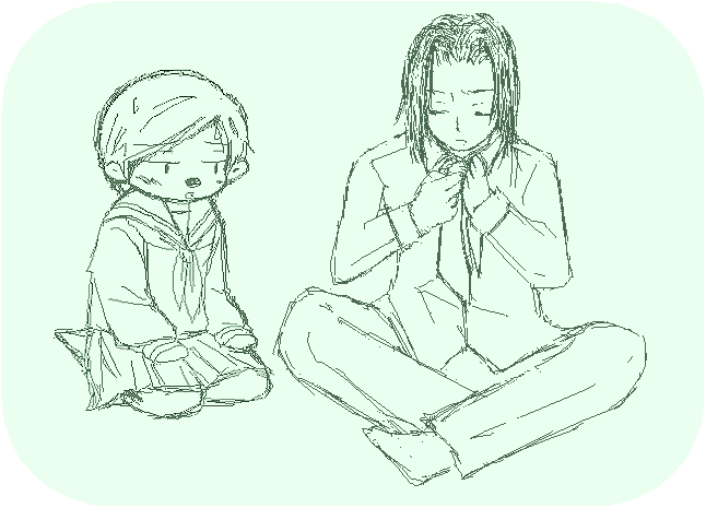 なんか私、絵チャもっと練習しようと思いました。 そして、その後checoさんが来て下さり…学生服絵を描いてみようと 言う話になったので、思わずセーラー服エビスをリクエストして 描いてもらっちゃいました。わぁい!すごい!可愛い!コスエビス大好き! 私は男子制服若を描かせていただき、ツーショット絵です。 (私にとっては、相当可愛いエビスなのですが 「女装は嫌~」と思う方はクリックしないで下さい) セーラー服エビス…vと、頑張って一人でネクタイ締めようとするゴリョ様~。 ネクタイ外すとこでも良いかも。萌える。ついて来れない方ごめんなさい…; でも…エビス、ホントに可愛い…vじ~っと見てると、萌えが止まらない…v
