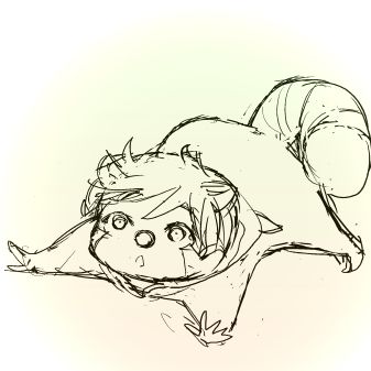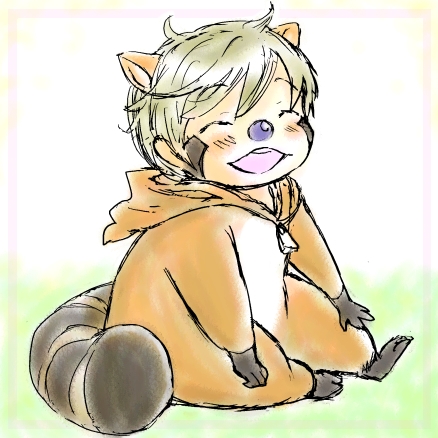 キグルミを着ているエビスになってしまいました。 ぽってり~、ぽってり~♪ぷっくり~ぷっくり~♪ (若のご希望で、らすかるごっこ中なのだと思います) 耳は別付けです。フードにも耳は付いていて、 フードをかぶると、もう少しそれっぽくなります。 実際にアライグマを飼育されている方のHPも見たりしたのですが、 ほんとぽってり体型が堪りません。愛らしい、愛らしい。 そのページのアライグマちゃんは、のびのびと幸せそうでしたが、 アライグマの飼育は難しく、一緒に暮らすには許可が必要らしいです。 あと、らすかる超愛らしい。 あらゆるポーズが可愛いのですが、 特に腹ばいになっている図や、何かに抱きつく様な図が堪りません。 エビスにさせても可愛いです。 (しっぽがCャラメルコーンみたくなってしまったけどね…) うん、ぜひ大切に育てて下さい。 ------------------------------------------------------------------ 描くのが楽しくて、つい色々描いてしまいました、笑。 リクありがとうございました~(^v^) ------------------------------------------------------------------ は!拍手押して下さった方、ありがとうございました!