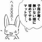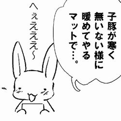 私の職場は農産畜産に関する物を扱っているんですが、 様々な商品が有り過ぎて、聞いた事の無い商品なんかもあります。 先日「××マット」という商品を探していた時の事… 威厳ある部長が「こぶた」とか言うと なんだか可愛らしい感じがする…のとは別に 子豚っていうとなんか子エビスみたい…と 思わず思ってしまう私はどこまでエビス好きなんだと思いました。 つまりその××マットは電気毛布の様な物の訳で… 子エビスに子豚のコスプレさせて、そのマットに乗せて暖め…とかいう変な妄想が…。 ちょっと、この絵はあまり可愛く描けなかったけど、 (しかも子豚なのに、首輪とか付けちゃってゴメンだけど…) 子豚でエビスが連想される私はもう、どうしたら…。