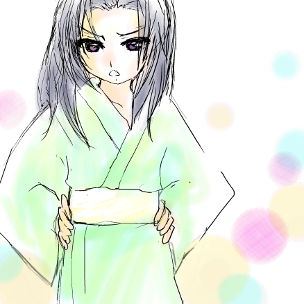 3巻はナナちゃん達が温泉に入っていたので、 やはり温泉湯上り若絵を描いてました、私。 あと毎度絵茶ではホントにテンパります。 他の方の絵を眺めてばかり(眼福)な私です。 (何を描いたら~)って悩んで、描けなくなっちゃうんですよね…。 で、じたばたする…。今回は、四谷先生と浴衣ロジと 浴衣ロジ⇒(古い旅館って怖い…)とか言って可愛かったんだもの… あと、梅ちゃんず で、最終的にやっぱり若を描いてました。笑。 -------------------------------------------------------- あと、今回ははじめましての出会いもあり、(おぉ!)って 思いました。はじめましての時って勇気がいると思うのですが、 思い切って入室して下さったとの事でありがとうございました♪ あと皆さん謙遜されますが、皆様素敵絵師さんたちですよぅ。 あと素敵萌え語りが楽しい&素晴らしい~(^v^)。 -------------------------------------------------------- そして今回とうとう主催者が先に落ちる絵茶になってごめんなさい。 ほんとはちゃんと最後まで残って無事閉会を確認したいのですが 今回の方たちはお任せしても問題が起きなさそうだったし…、 せっかくまだ語れそうな雰囲気だったので、おまかせしちゃいました。 あ、あと私という人間が、不器用過ぎてごめんなさい。 褒めてもらっても、素直に喜ぶ事が出来な過ぎて滑稽です…。 (嬉しいありがとう)って思うんだけど、すぐ(でもダメ! 私なんて駄目駄目なんだからっ)ってなるの。不思議……。 --------------------------------------------------------- あ、予告として… 絵茶は、若とエビスが表紙の8巻分までは開催させていただく予定なので、 お時間のある方おられたら、遊んでやって下さいませです(^v^)